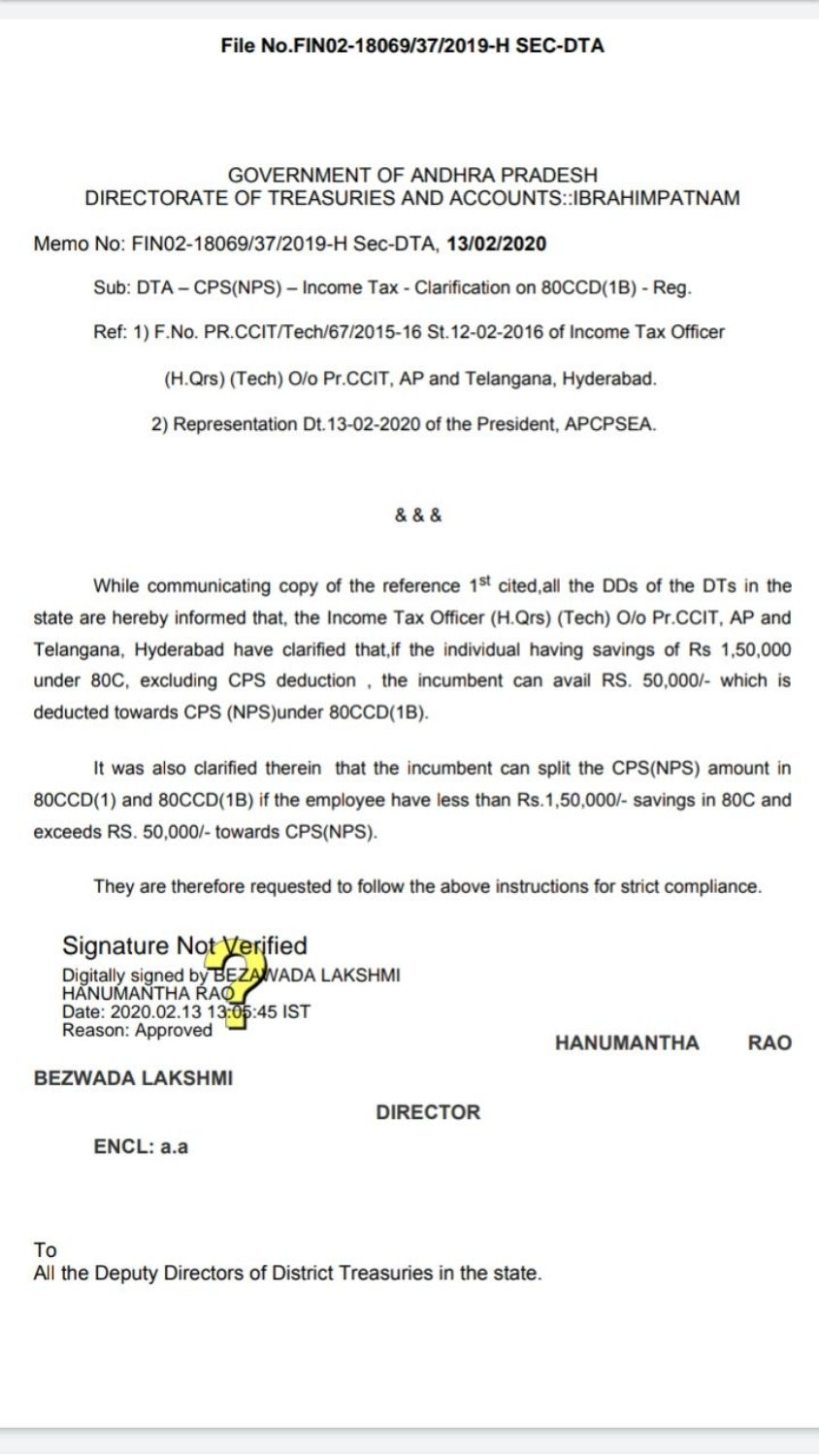 Memo no:18069 dt:13-2-20 Income tax 80ccD1B కి క్లారిఫికేషన్ ఇచ్చిన రాష్ట్ర ఖజానా శాఖ